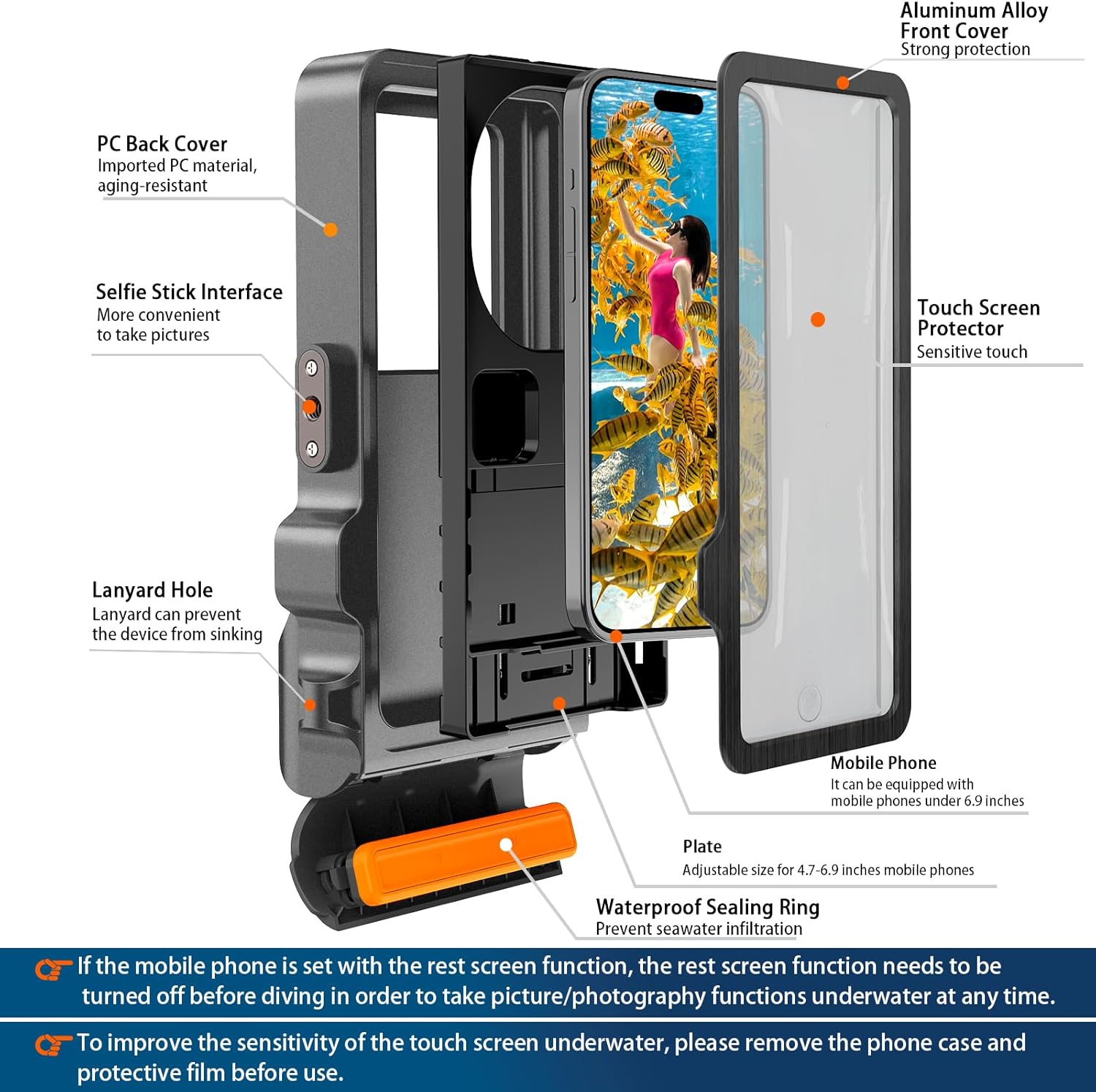 √ 【Correct Installation & Professional Warranty Service】 Easy to seal and remove design. To better protect your phone when taking beautiful photos and videos during underwater activities, so read the instructions carefully before installation. The latest diving shell can be used underwater with a touch screen, making it lighter and easier to carry. Please note: Products may be damaged by Damage due to weather or other causes during transportation, but you can contact us at any time as long as you receive defective items. Saupsitnz team will provide you with a satisfactory solution.