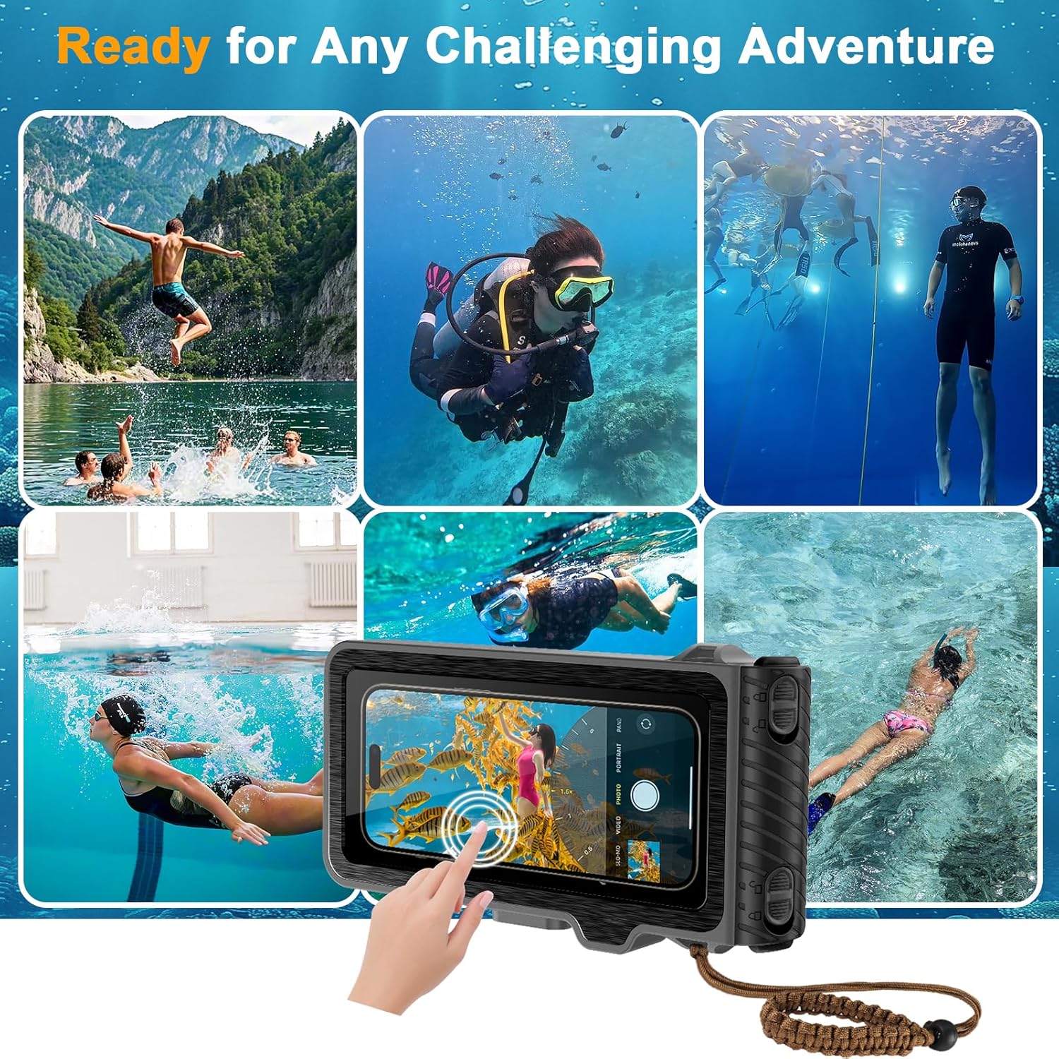 √ 【Newest 33ft/10M Maximum Diving Water Depth】Using high-quality IP68 waterproof and pressure-resistant solid materials, the ordinary waterproof case compatible with a single model is upgraded to a diving case that can dive to a maximum depth of 10 meters, which greatly improves the waterproof and pressure resistance of the product performance. If you and your family or friends are outdoor enthusiasts who like any water or underwater sports, then this upgraded phone diving case will definitely become your best partner.