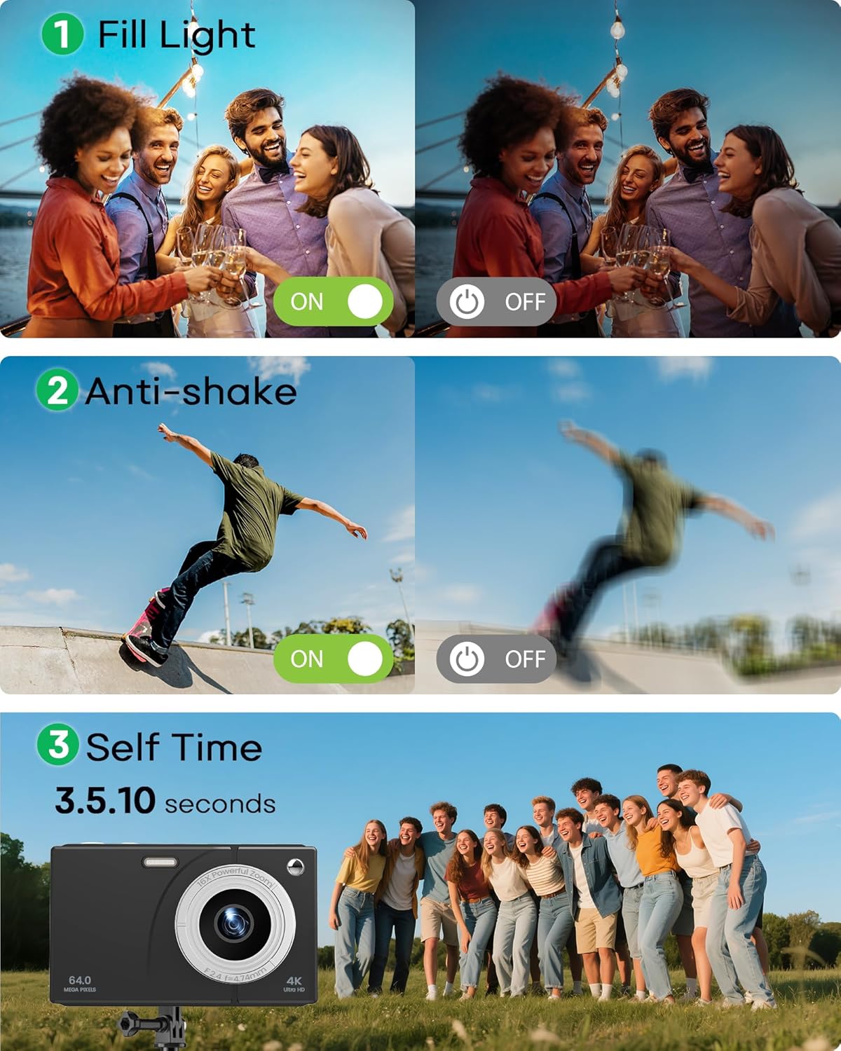 【4K video & 64MP Photos – Easy to Use, Fun to Share】 Easily capture everyday moments with clear 4K video and 64MP photos. This digital camera is designed for casual use—whether it’s recording a trip, family fun, or just daily life. Compact and simple to operate, it’s a great choice for anyone looking for a budget-friendly camera with solid performance.**Please remove the lens protective film before use.**