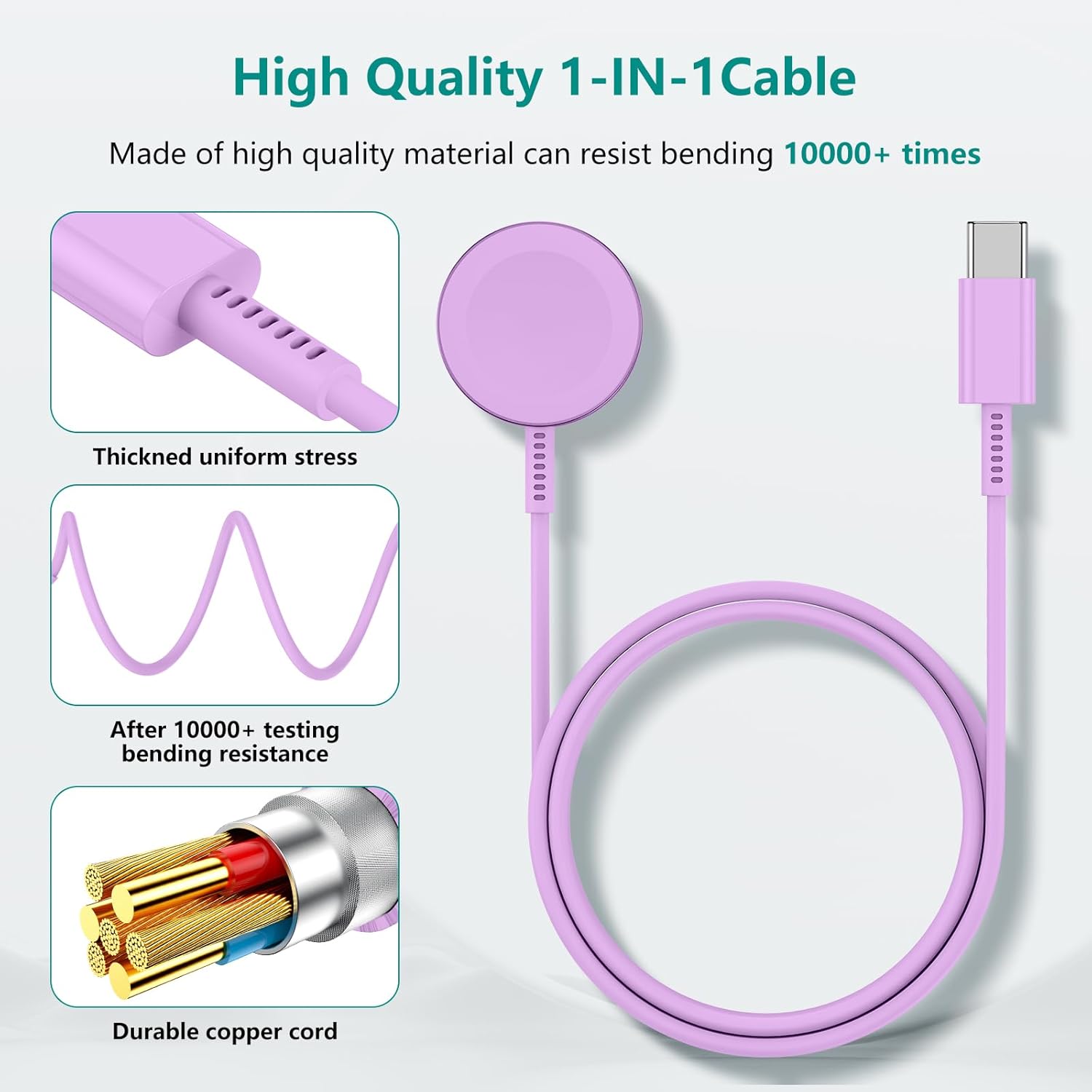 Upgraded Apple Watch Charger, iPhone Watch Charger, Magnetic iWatch Fast Charger to USB C Cable 6ft with USB C Charger Block for iWatch Series Ultra/9/8/7/6/SE/SE2/5/4/3, Purple